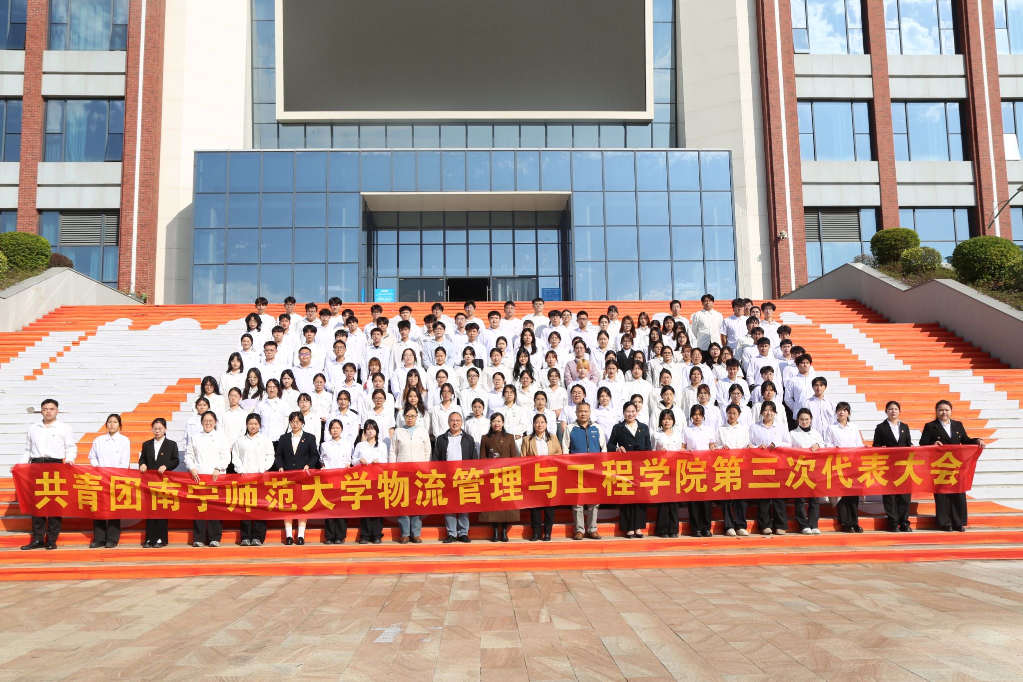 委员会第三次代表大会在武鸣校区于图书馆报告厅召开。学校团委副书记李静、学院党委书记陈兵、党委副书记黄宇、团委书记黄海嫚、院长助理李梅、物流管理工程系老师欧阳出席大会开幕式,学院辅导员老师及各班级学生代表共150余人参加会议。